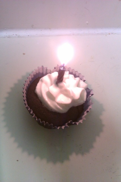 On October 7, 2011 by Meghalee DasCup cakes are really easy to make and it took me only about half an hour. So if you crave for something sweet in the middle of the night and can’t sleep coz you are too excited about something like your bday (ok, I am talking about myself), then just make happy cupcakes! I made a really small batch to celebrate my birthday, like 7 cakes, and since I would have to halve all the ingredients I did not want to use eggs, coz what will I do with half an egg in the middle of the night! Anyway I am posting the recipe for 12 cakes at least, but they get over fast. So it is better if you make at least two batches, especially if you have kids or a husband with a sweet tooth!